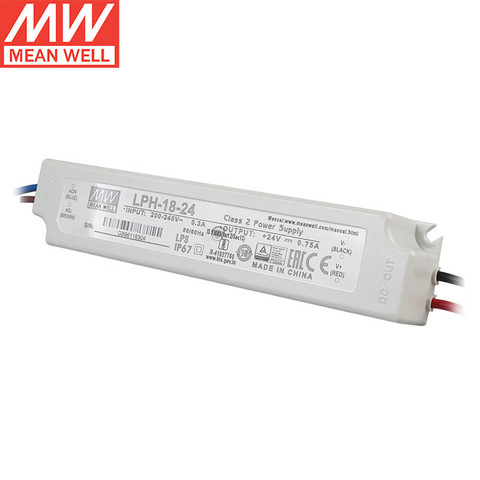 MEAN WELL-Fuente de alimentación industrial de 18W, 24V, 0.75A, IP67, resistente al agua, protección contra cortocircuito/sobrecarga para LED individual