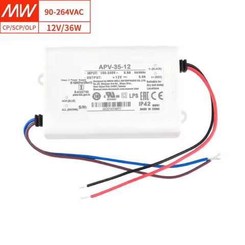 MEAN WELL APV 8W 12W 16W 25W 35W 12V Controlador LED de voltaje constante de alto costo, entrada de 90-264VAC, para iluminación LED, sello LED