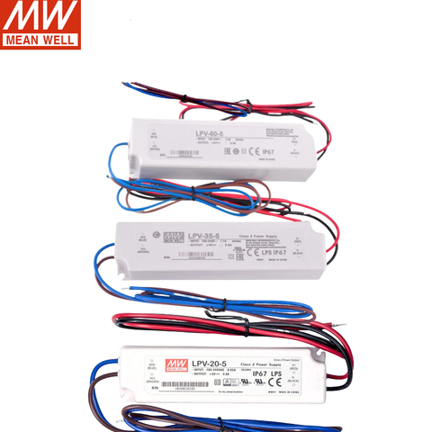 MEANWELL Serie LPV 20W 35W 60W 5V 12V 15V 24V Controlador LED de voltaje constante económico IP67 para iluminación de publicidad de tira LED