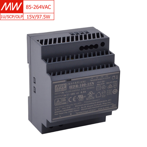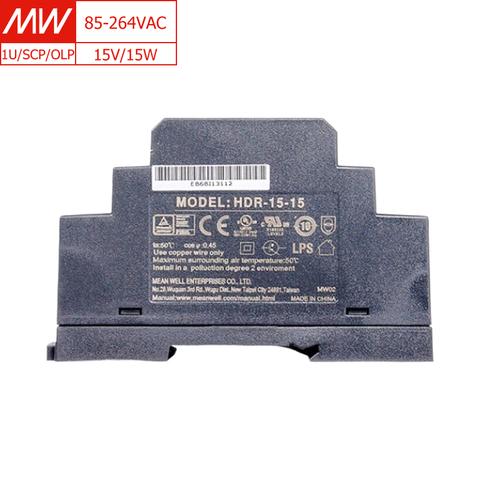 मतलब अच्छी तरह से HDR-15-15 15v एकल उत्पादन औद्योगिक नियंत्रण बिजली आपूर्ति अल्ट्रा स्लिम दीन रेल 1a वर्तमान