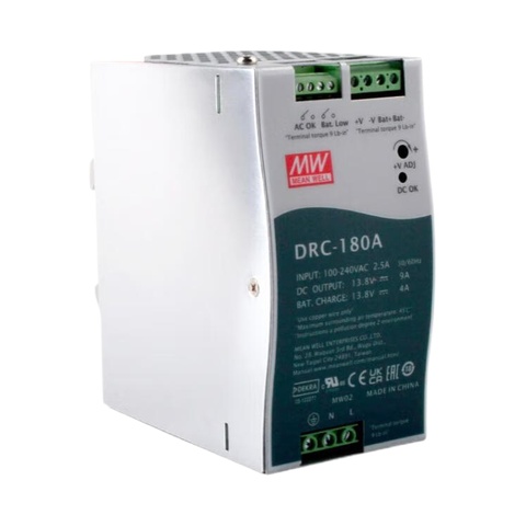 मेगवेल डीआरसी श्रृंखला 180w 13.8v या 27.6v आउटपुट, 90-264VAC, बैटरी चार्जर के साथ बिजली की आपूर्ति