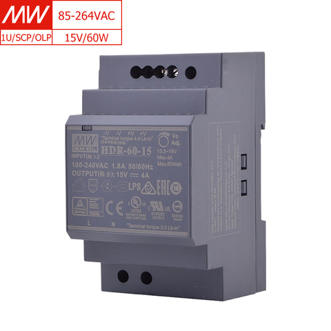मतलब अच्छी तरह से HDR-60-15 60w 15v अल्ट्रा स्लिम दीन रेल सिंगल आउटपुट औद्योगिक नियंत्रण और स्वचालन के लिए बिजली की आपूर्ति