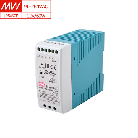 मतलब अच्छी तरह से DRA-60-12 दीन बिजली की आपूर्ति 12 वी 5a 60w लगातार चालू समायोज्य सार्वभौमिक इनपुट